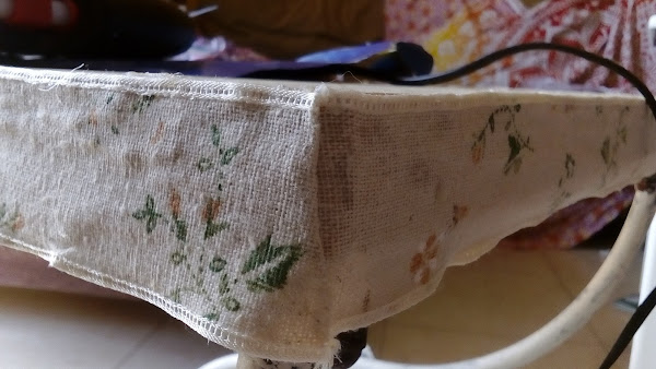8º Os he dicho alguna vez lo negada que soy para la costura? Pues es algo que mi madre desde niña intentó inculcarme, el bordado, corte y confección y yo nada, rebelde total sobre todo en lo que cosas femeninas se trataba. Así que hoy día, me defiendo mejor con otros recursos, como por ejemplo la cinta de doble cara para coser bajos y otros menesteres; pues dicho y hecho, así "cosí" este cojín. Plancha en mano y cinta adhesiva, y tralará! faena hecha en unos minutos.