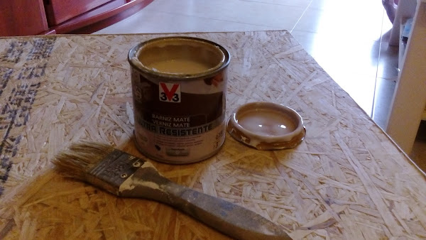 5º Ahora toca proteger el sobre, con un buen barniz ultra resistente. Siempre hay que barnizar siguiendo la veta, pero en este caso, a que veta sigo?? pues libre albedrío!!!
