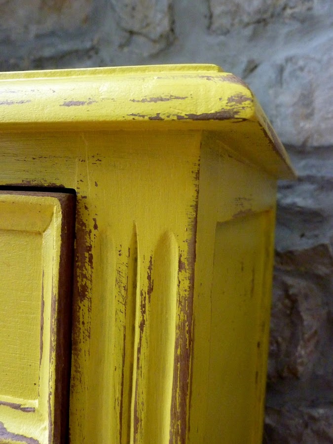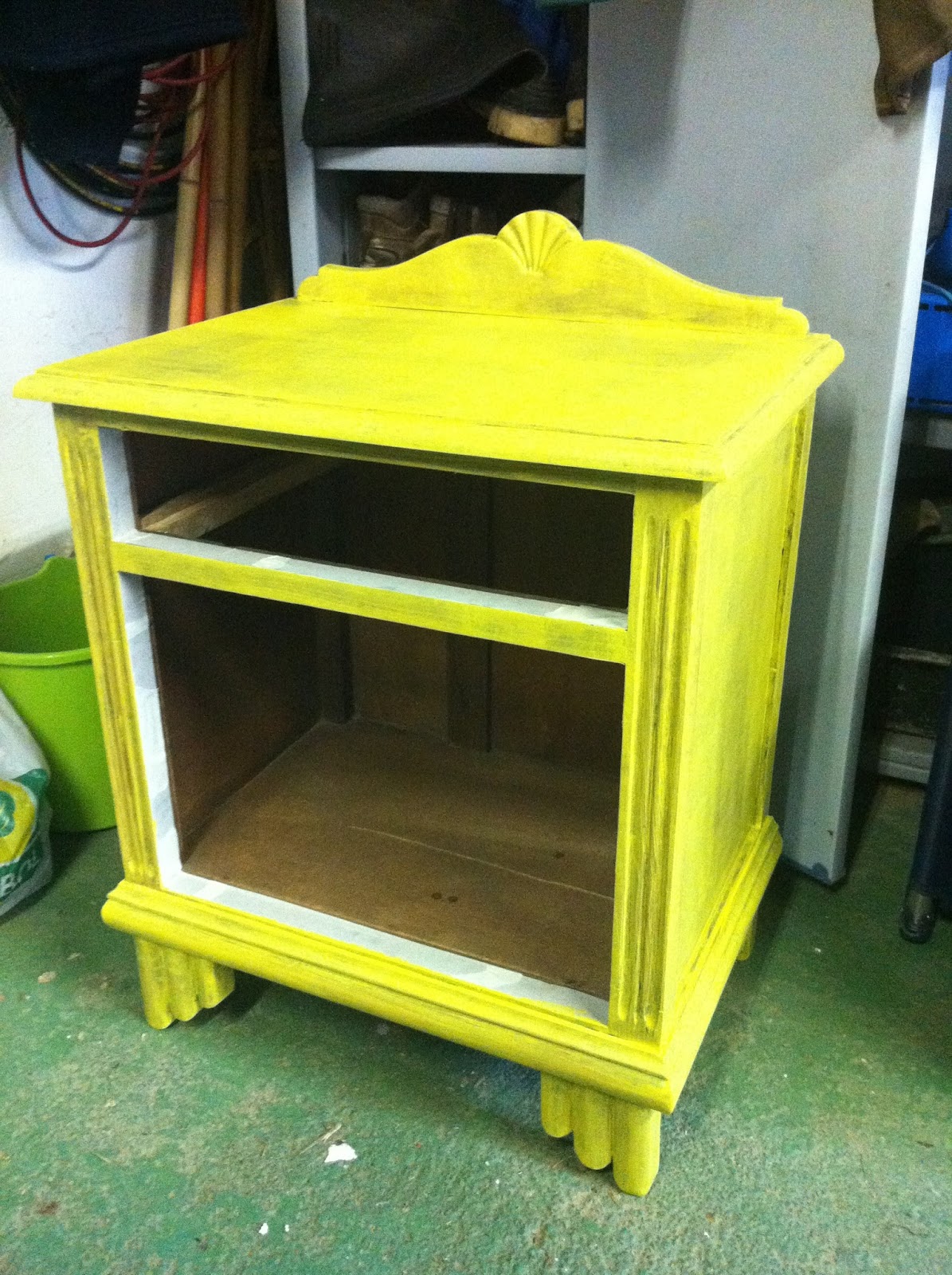 Y dimos dos capas de pintura amarilla al agua, lijando como siempre entre capa y capa.
