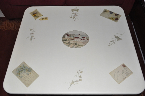 Despues mi esposa la pintó en color blanco algodón y con decoupage la decoró y pintó algún detalle.Y esto es la primera parte del trabajo acabado: