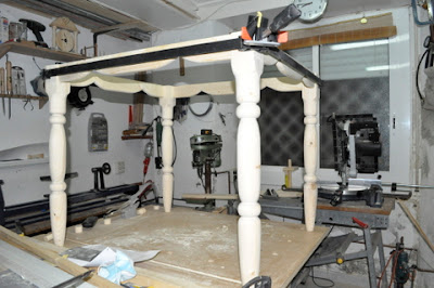 Así que me puse manos a la obra,ella me dijo el tipo de mesa que quería para que se dijera con el costurero que le había echo y que podeis ver en la foto anterior.Empecé con los listones para hacer las patas torneadas: