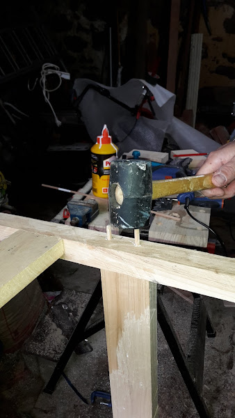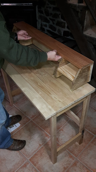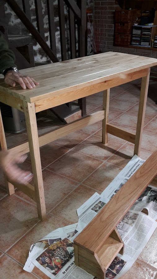 Primero montamos el armazón de la mesa, como veis con el mismo sistema de tubillones vistos y encolados.