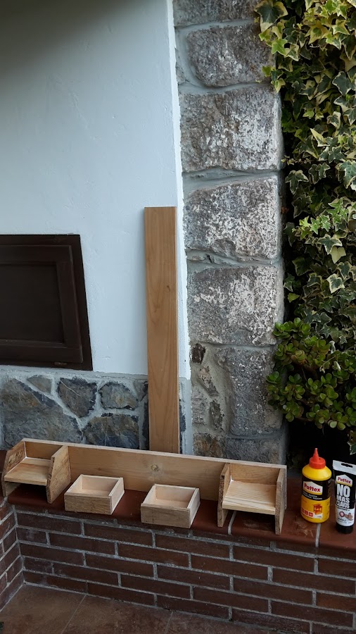 Ahora haremos la parte de arriba del escritorio, ademas de unos pequeños cajones como se ve en las imágenes, todos ello va pegado con cola de montaje.
