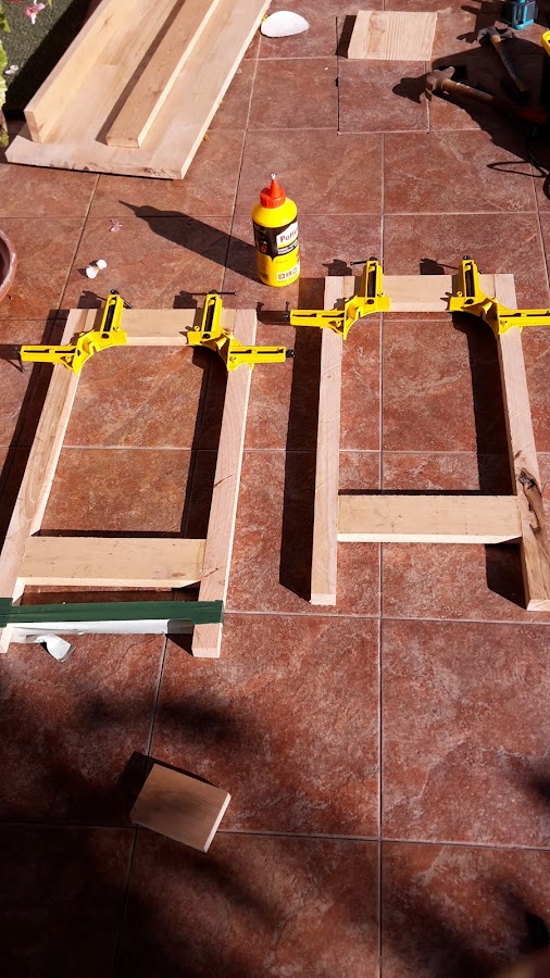 Ahora haremos un armazón para las patas, este ademas de encolado irá sujeto por tubillones, yo los pongo vistos y luego los corto al ras, es mas fácil y quedan bien.