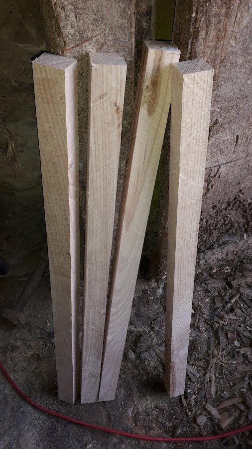 A continuación cortamos las tablas para hacer la parte de arriba de la mesa,que como veis son tablas de castaño machihembradas que sobraron de un suelo y a las cuales hubo que cortar el machihembrado de los laterales.