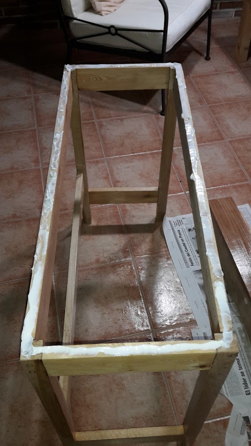 Aquí se puede ver como queda, a continuación encolamos la parte de arriba del armazón