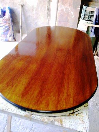 Esta mesa estaba llena de capas de barniz que impedia ver la veta de su madera original, cuando limpiamos el barniz antiguo vimos la veta tan bonita que tenia y aprovechamos las líneas de la chapa, el resultado es una bonita mesa de salón apta para cualquier hogar. ANTES DESPUES