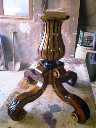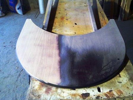 Aquí tenemos un tablero de mesa de nudo de raíz, después de un buen lijado y un teñido claro hemos sacado toda la veta y a quedado muy vistosa. ANTES DESPUES