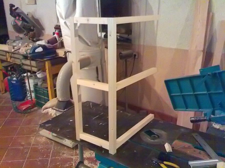 Como podemos apreciar, el montaje es tan sencillo como eficaz. Una vez resuelta la estructura, nuestro amigo encola por el interior unos listones que servirán de apoyo para las baldas.