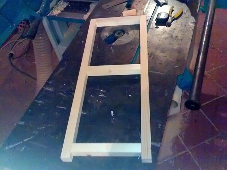 El módulo de la mesa, con los tableros ya colocados. A pesar de su ligereza, este armazón tiene gran solidez, todas las piezas se refuerzan unas a otras en un conjunto solidario.