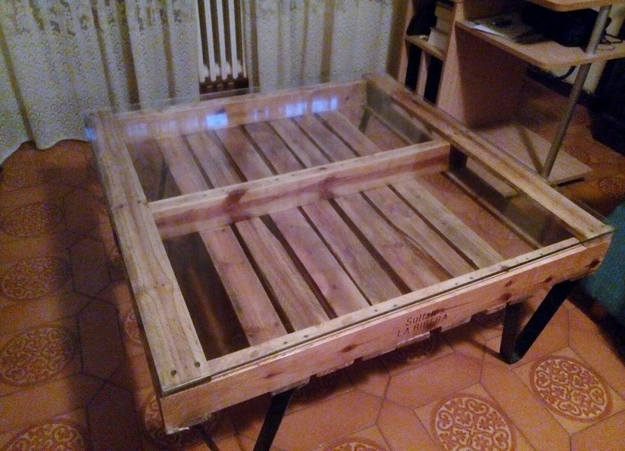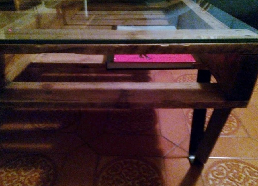 Además, dos de las tablillas, van en cada extremo de la mesa para aumentar el hueco entre el vidrio y la madera.
