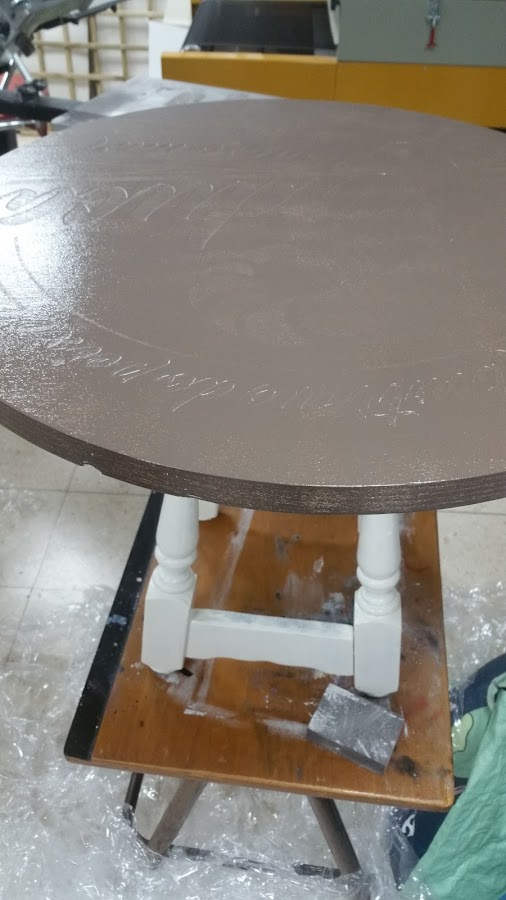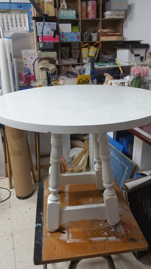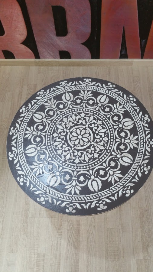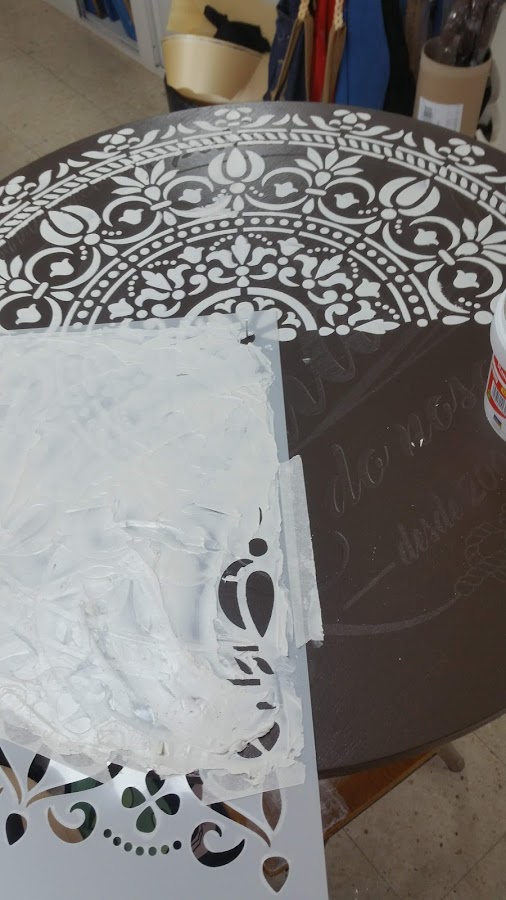Ya tengo terminada la mandala, ya sólo me queda lijarla un poco y darle una cera protectora a toda la mesa.
