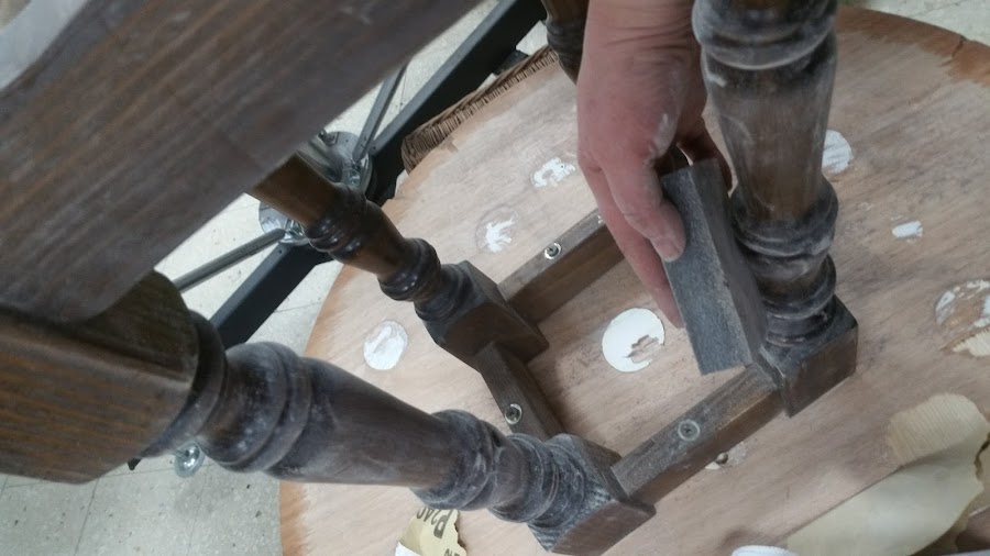 Una vez seca le paso otra mano al sobre de la mesa en color marrón chocolate.