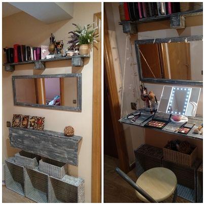 En ésta entrada descubrirás lo fácil que es hacer una mesa tocador con palets + estantería o si lo prefieres, un espacio auxiliar donde estudiar. Además, la ventaja de ésta idea es que encaja en aquellos espacios pequeños gracias a la mesa abatible que una vez plegada, ocupa menos de un palmo.