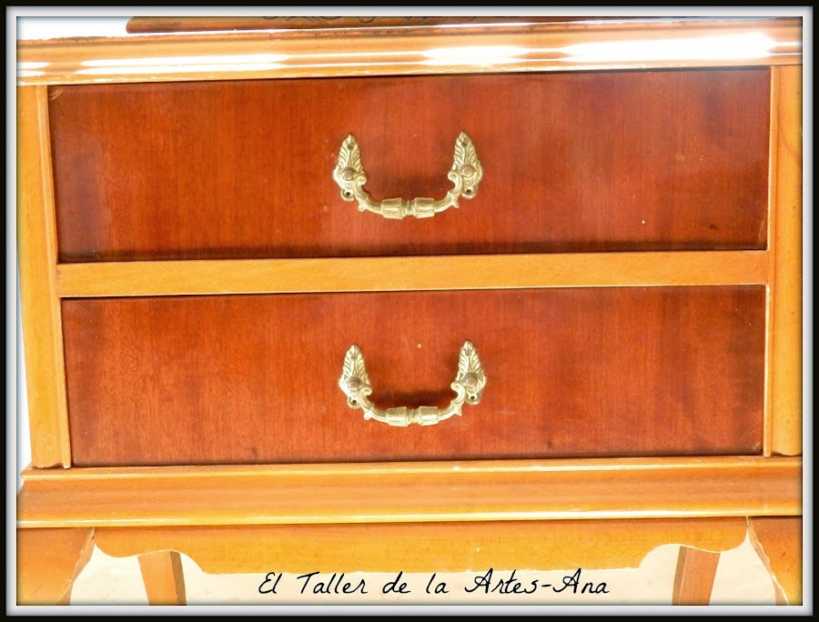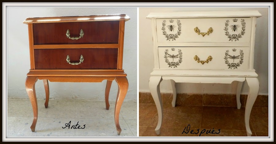 Como quería hacer algo de este estilo, compré en un rastro de antigüedades una mesita de noche. Ya sabéis que me encantan y me gusta mucho trabajar con ellas.