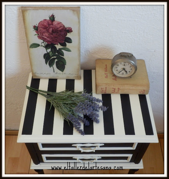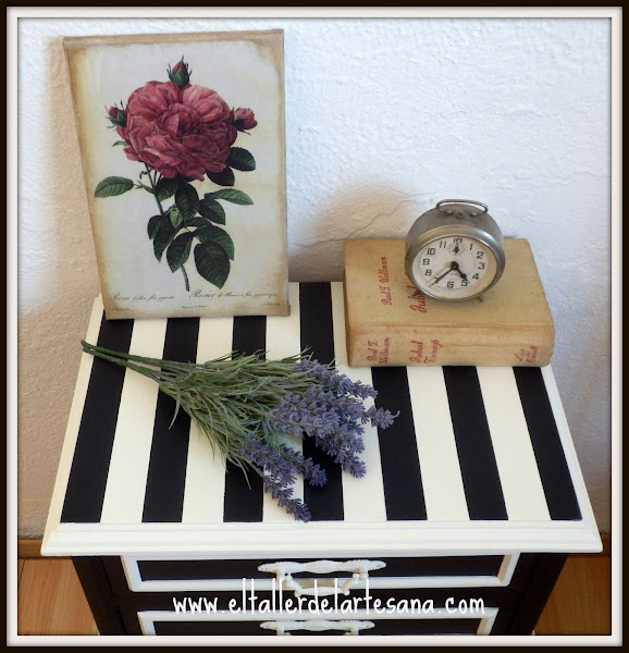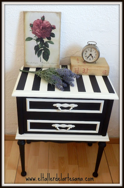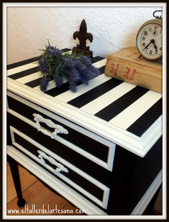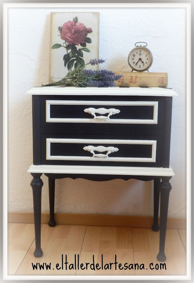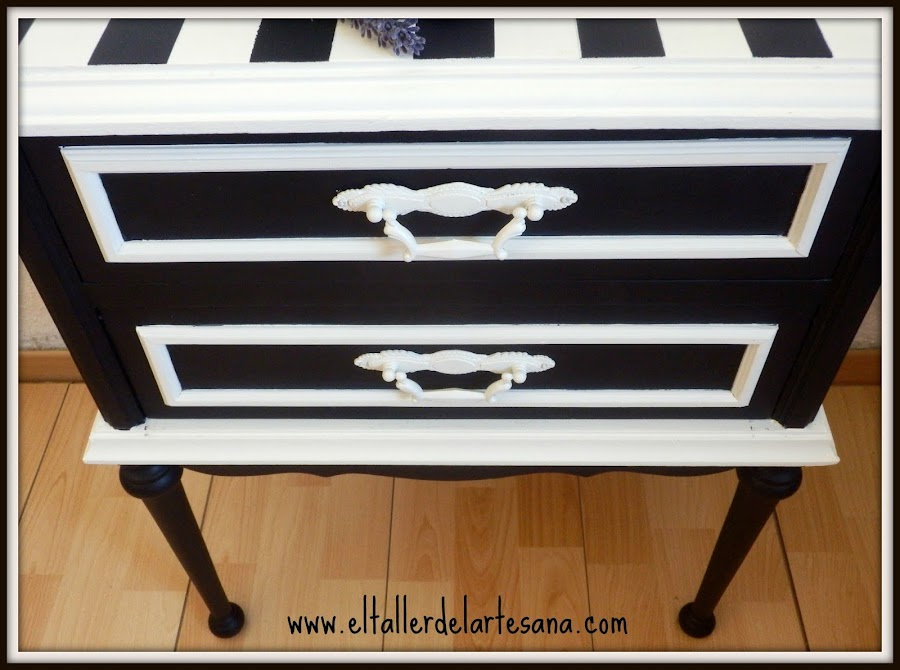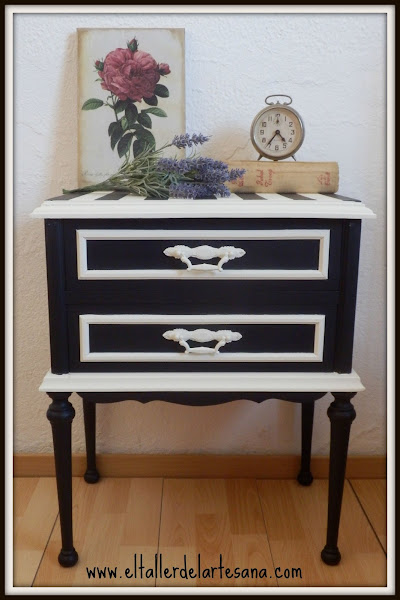 Como me gusta mucho la combinación del blanco y el negro decidí que esa iba a ser la decoración elegida para esta pequeña mesilla.