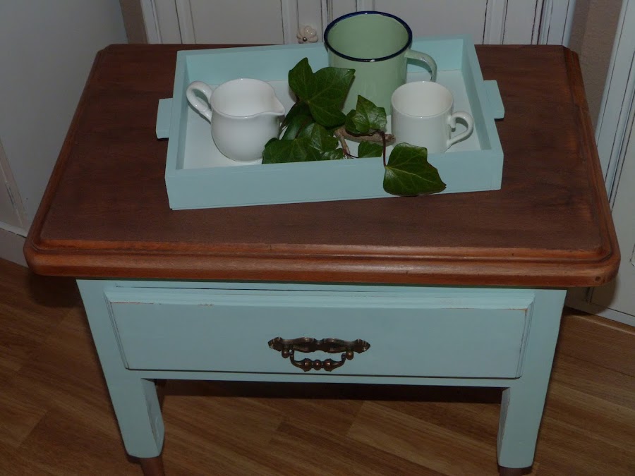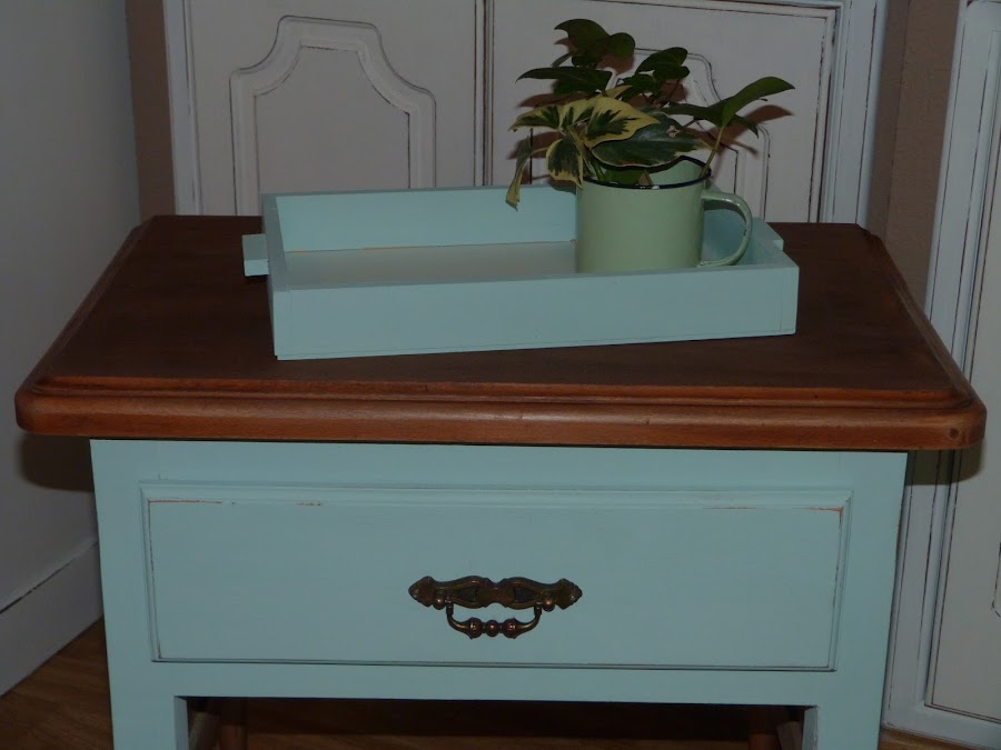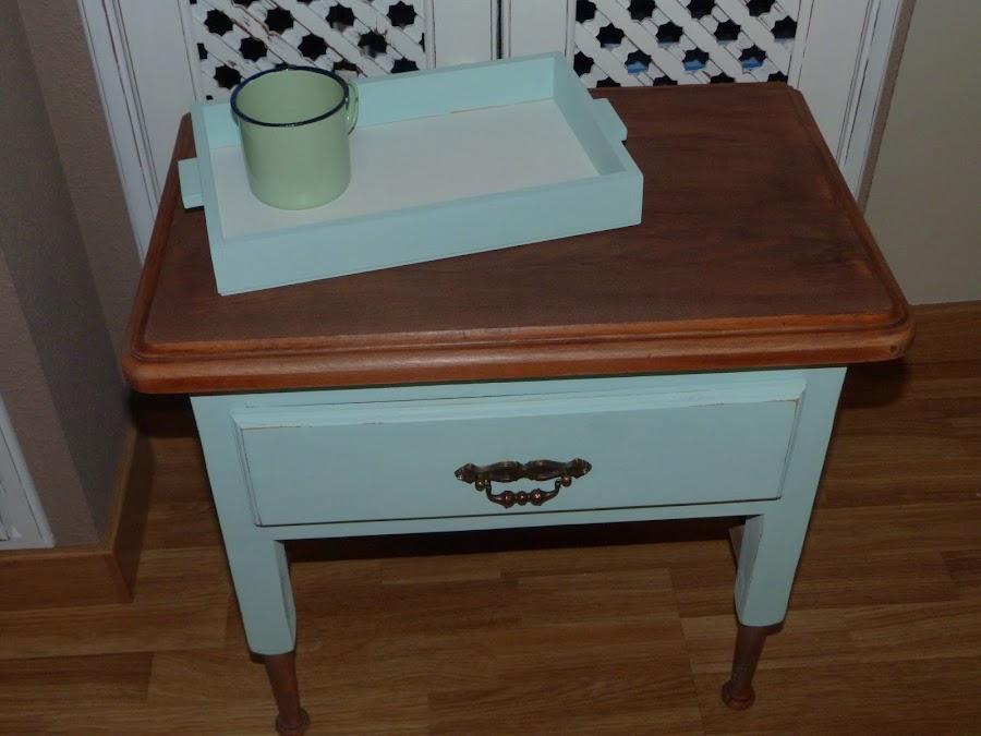 Ya veis que no es gran cosa, pero me apetecía hacer algo con ella. Con la inspiración del mint y la preciosa veta de su tapa, me he animado a darle un aire totalmente renovado.