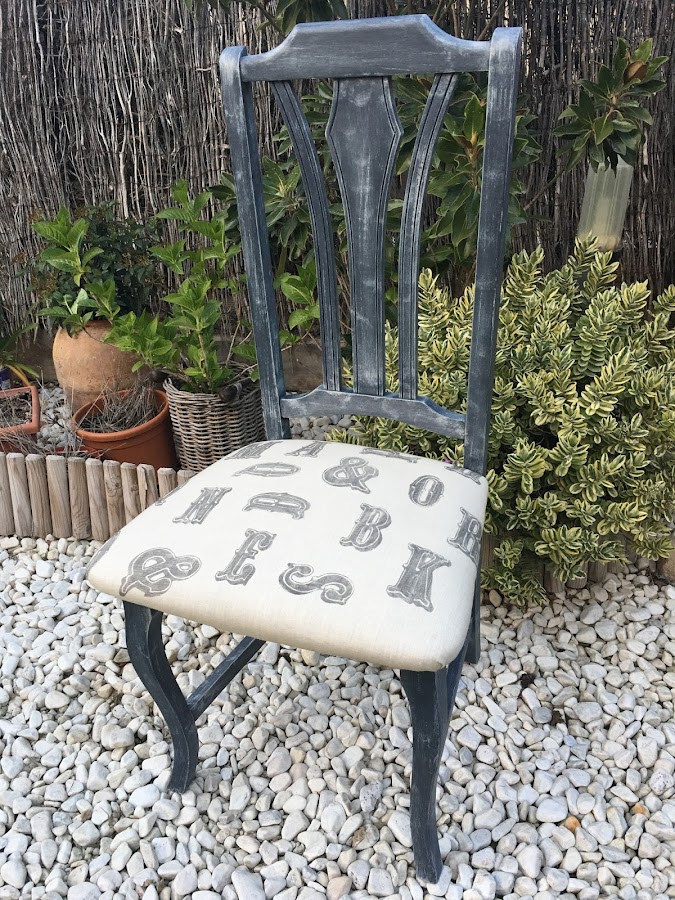 Los colores tienen que encajar con la silla así que vuelvo a utilizar la pintura tiza graphito , el tono primitive y añado el color blanco de la casa Americana Decor.