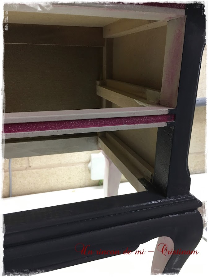 A los cajones los he pintado por el borde externo con el color primitive y luego he puesto cera.