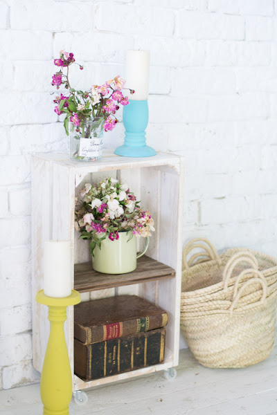Por supuesto que a las dos les di uso, y hoy te enseño una de ellas. Esta de tonos blancos la convertí en una mesita auxiliar.