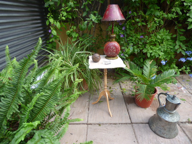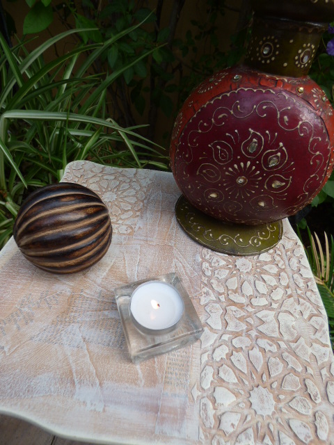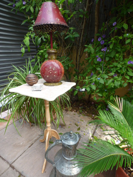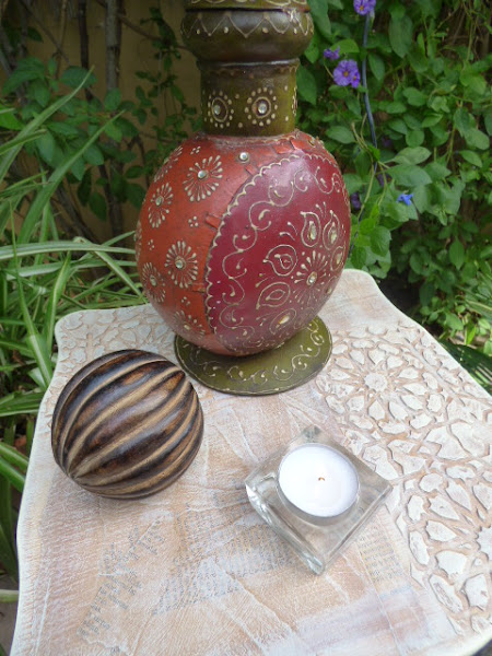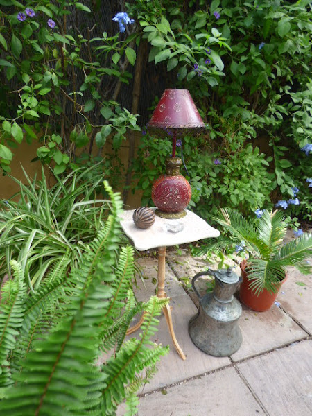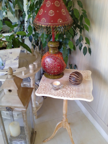 La de años que tengo esta lamparita.....la compré en una de esas tiendas que tienen todo tipo de articulos traidos directamente de la India.....alfombras, figuras talladas de madera, saris preciosos....hubo una época que me chiflaba ese estilo en decoración......
