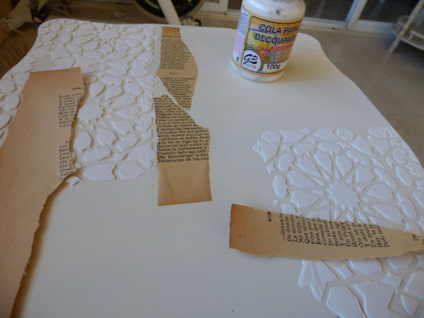 Elegí esta plantilla de fondo que nunca aún, había hecho con relieve y para que éste quedara bien grueso, usé la pasta de modelar