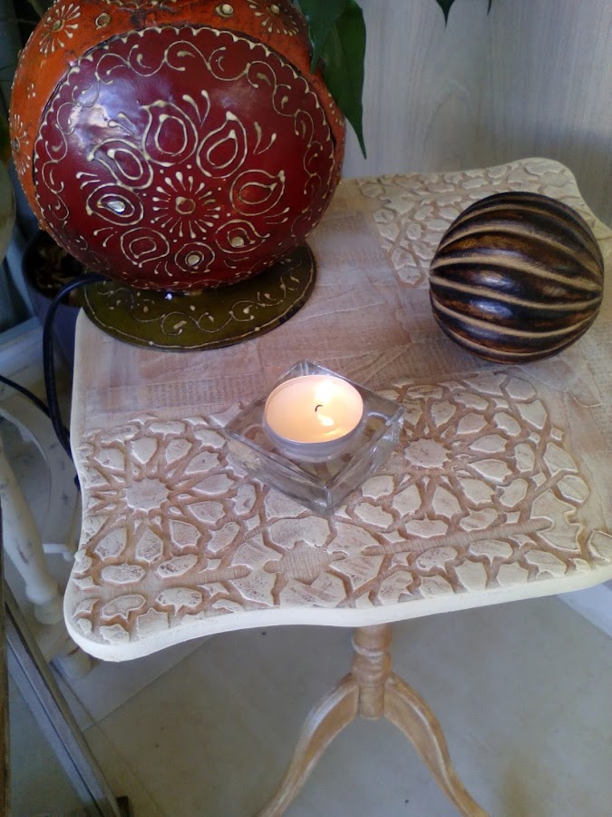 La plantilla tiene un aire moruno que me encanta y bien lijado el relieve quedaba precioso
