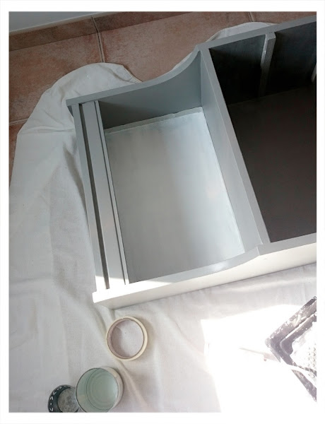 Os explico como realicé esta transformación, de este patito feo a hermoso cisne....¡lo que se puede lograr con pintura....! lo primero fué un trabajo de limpieza, pasando un paño húmedo en solución jabonosa neutra y secar a continuación, ya está la pieza dispuesta para el cambio, después pasé la lijadora, con una lija de grano fino, para un mejor agarre de la pintura, después le apliqué una mano de selladora y tres manos de pintura acrílica gris satinado, en las zonas que muestra la foto.