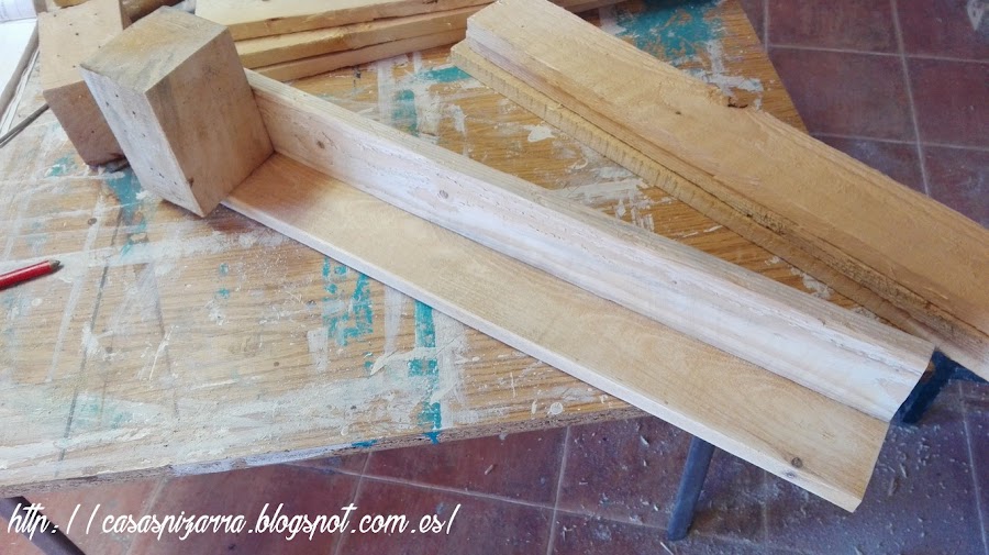 Con un taco de los palets y dos listones hice cada una de las cuatro patas.