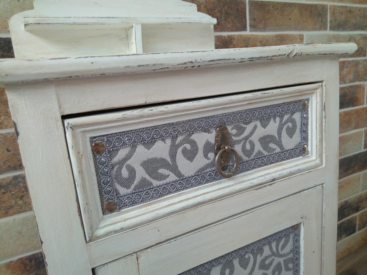 Os dejo con las fotos del proceso de su cambio radical, del antes y después de lijar, retirar clavos oxidados, enmasillar, volver a lijar, sustituir base de madera, imprimar, pintar, decapar, dar pátina de envejecido, empapelar, tapizar e instalar cierre imantado en puerta.