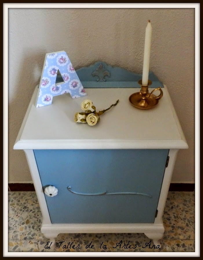 Como veis la he pintado en dos tonos, azul grisáceo y blanco roto.