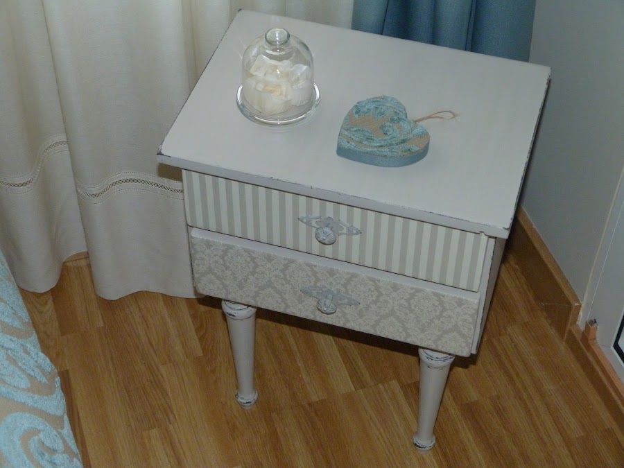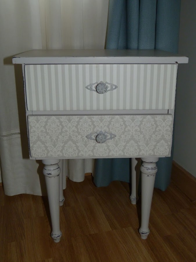 Desde luego, el efecto iba a ser totalmente distinto que en la primera mesilla, ya que aquella estaba pintada en un color gris oscuro. En fin, que me atraía también la curiosidad de ver ambas versiones.