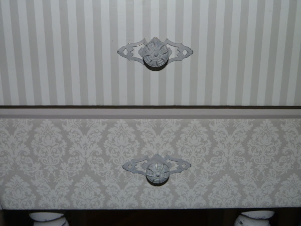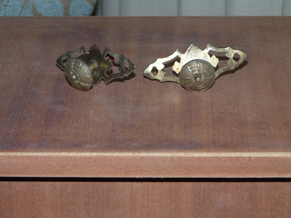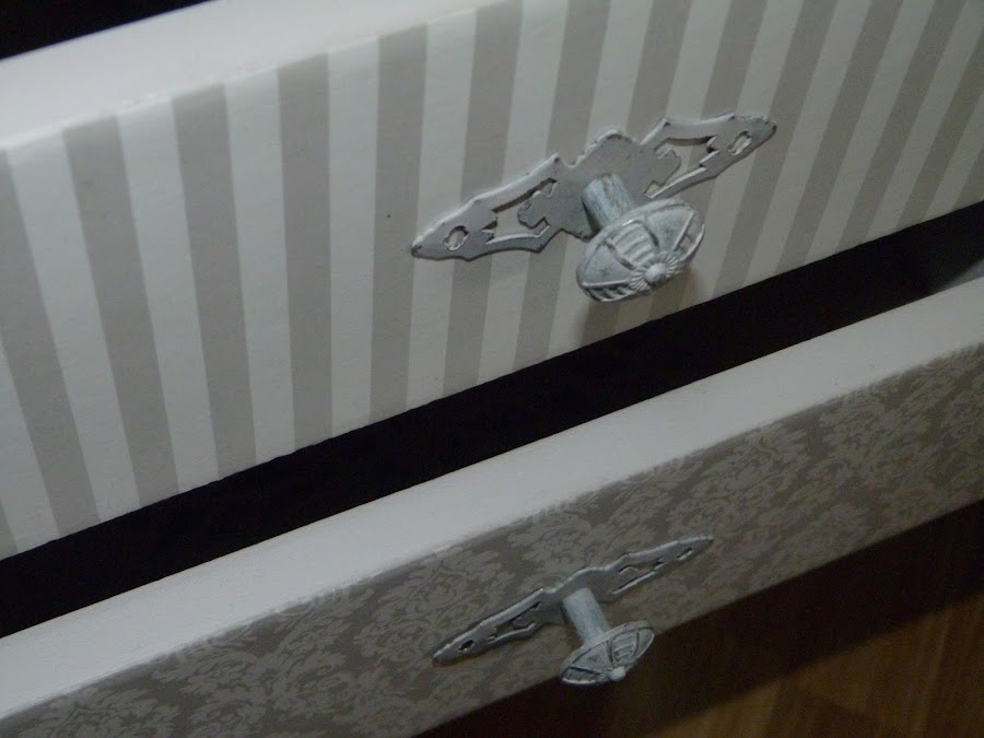 Por último, los tiradores. Me parecían perfectos, y aunque no eran de un dorado brillante (que me horroriza), los he "manchado" ligeramente con la misma pintura para que queden mejor integrados en el conjunto.