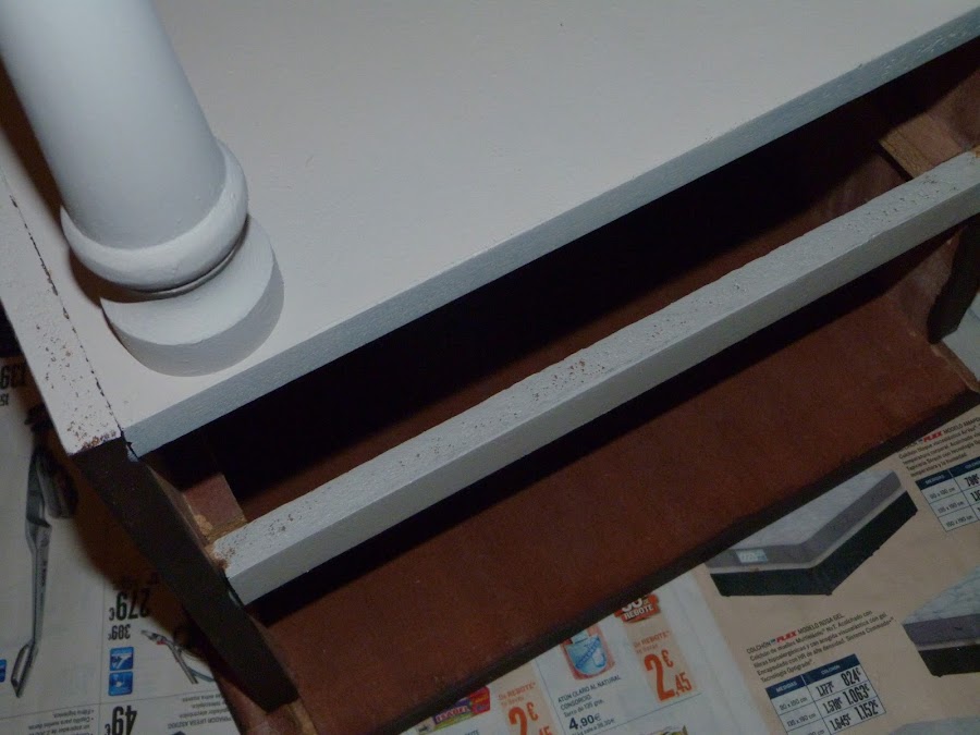 En cuanto al interior de los cajones... estaban algo rozadillos del uso. Hubieran podido quedarse así, pero no lo puedo remediar. Lo de los interiores es algo que me puede... no me gusta nada que estén feos, y menos en un mueble recién arreglado. Me parecería imperdonable, de verdad.