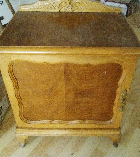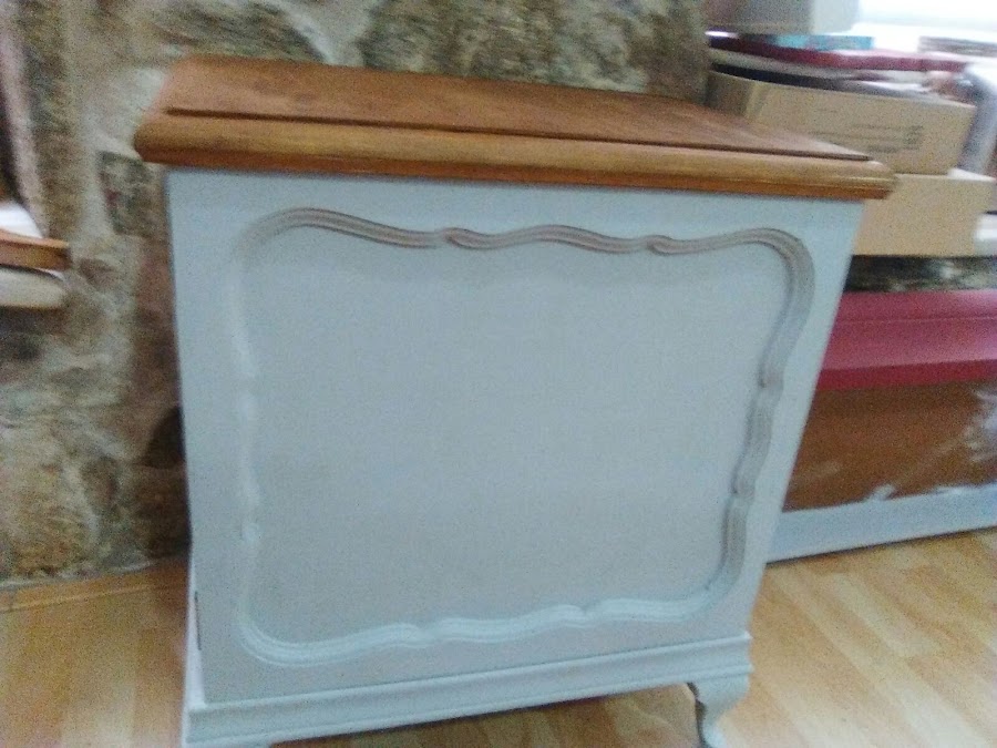 Le quité el copete que guardo para un próximo trabajo y la pinté de un gris clarito después de lijar y teñir el sobre de un color más oscuro