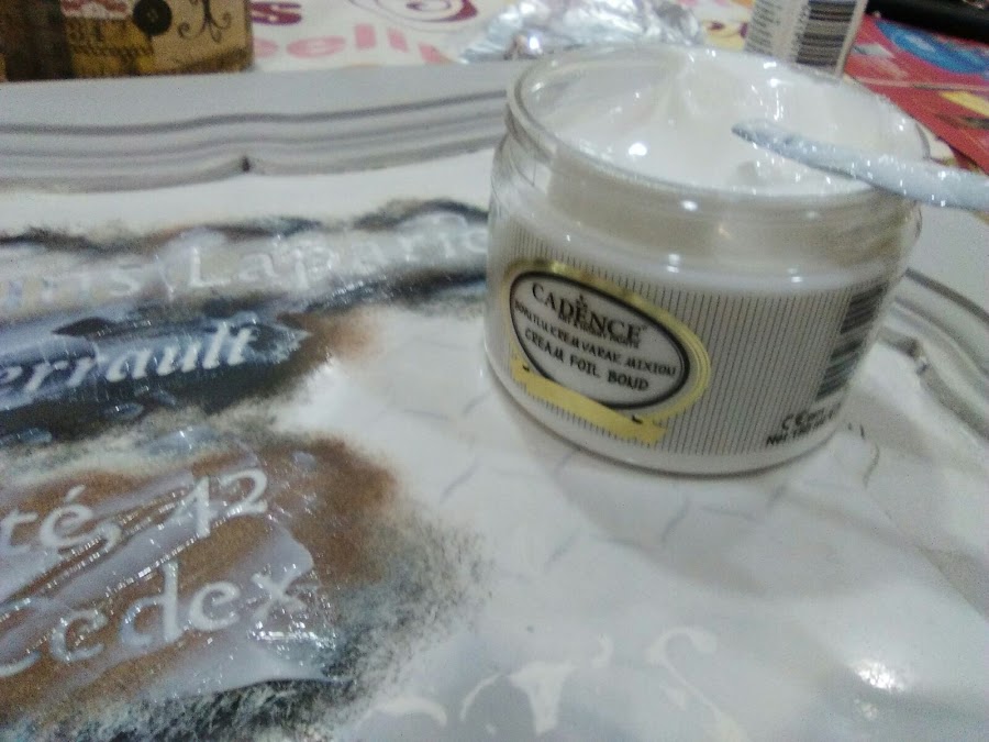 Y con esta pasta en relieve para foil le puse otra plantilla