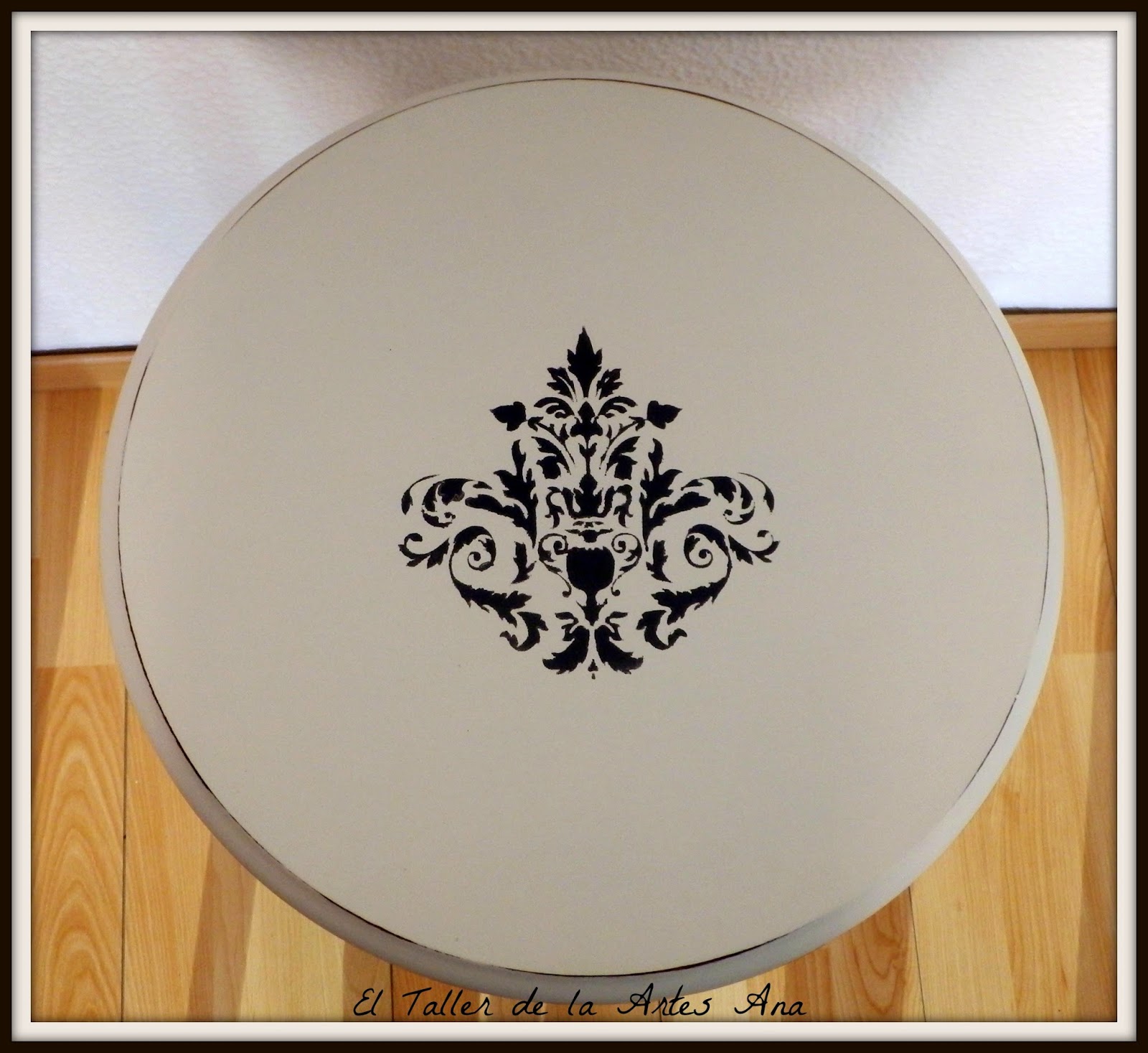 Después elegí dos colores que combinaran bien: un gris oscuro y un blanco roto. Para la decoración algo sencillo, un stencil con una plantilla adamascada que me encanta. Os enseño como quedó.