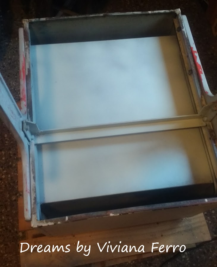 Empecé por preparar bien toda la superficie, lo cual, si bien no es la tarea más agradable, es sumamente importante para garantizar un buen resultado. Limpiar, lijar, eliminar todo resto de óxido y polvo, para luego poder imprimar bien toda la superficie a pintar. Como elegí utilizar pinturas acrílicas y algo de pintura a la tiza utilicé una imprimación al agua en todo el archivero salvo en el fondo, donde pinté con un antióxido común de los que se consiguen en ferretería.