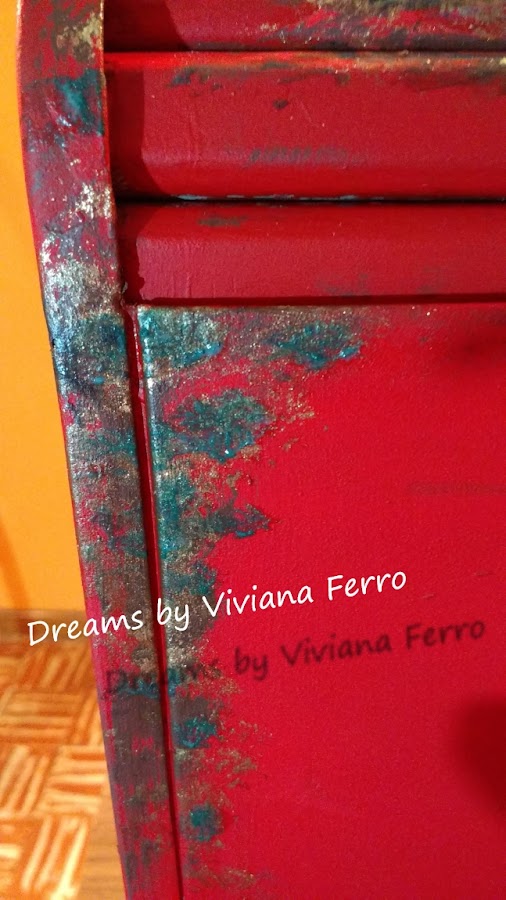 Una vez preparada la superficie procedí a dar una base en color rojo con pintura acrílica. Ya empieza la a notarse la transformación!
