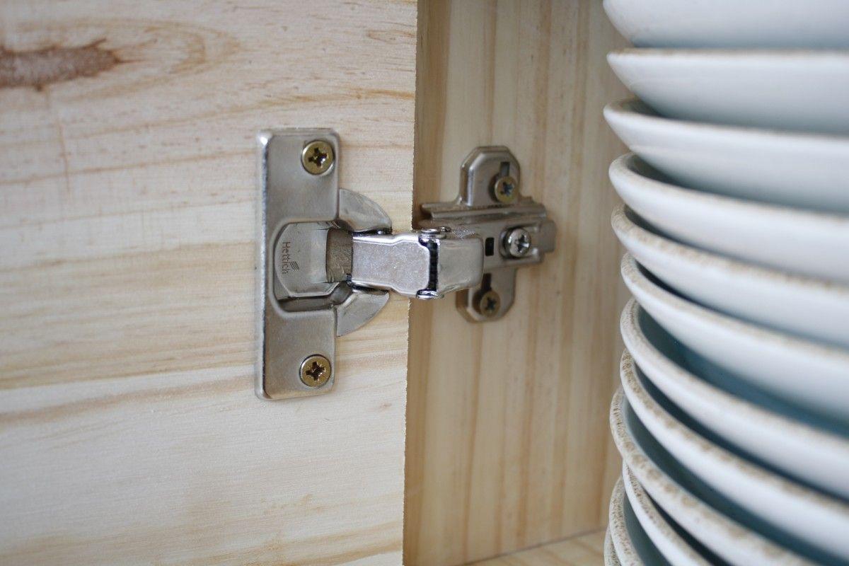 Al cortar el tablero de madera para las puertas de nuestro mueble pedí que me hicieran los agujeros correspondientes para las bisagras de cazoleta. He de deciros que los tableros no son perfectamente rectos (sobre todo los que se venden sin retractilar) por lo que tenéis que mirarlos bien y elegirlos por estética (con más o menos nudos, sin golpes, sin rajas…) y evitando que estén combados.Para las puertas finalmente deseché dos de ellas y compré otro tablero por esta misma razón. Una vez colocadas no me convencían, o sobresalían en algún punto o se metían dentro del mueble. Así que os recomiendo hacer una buena inspección de los tableros siempre que podáis.