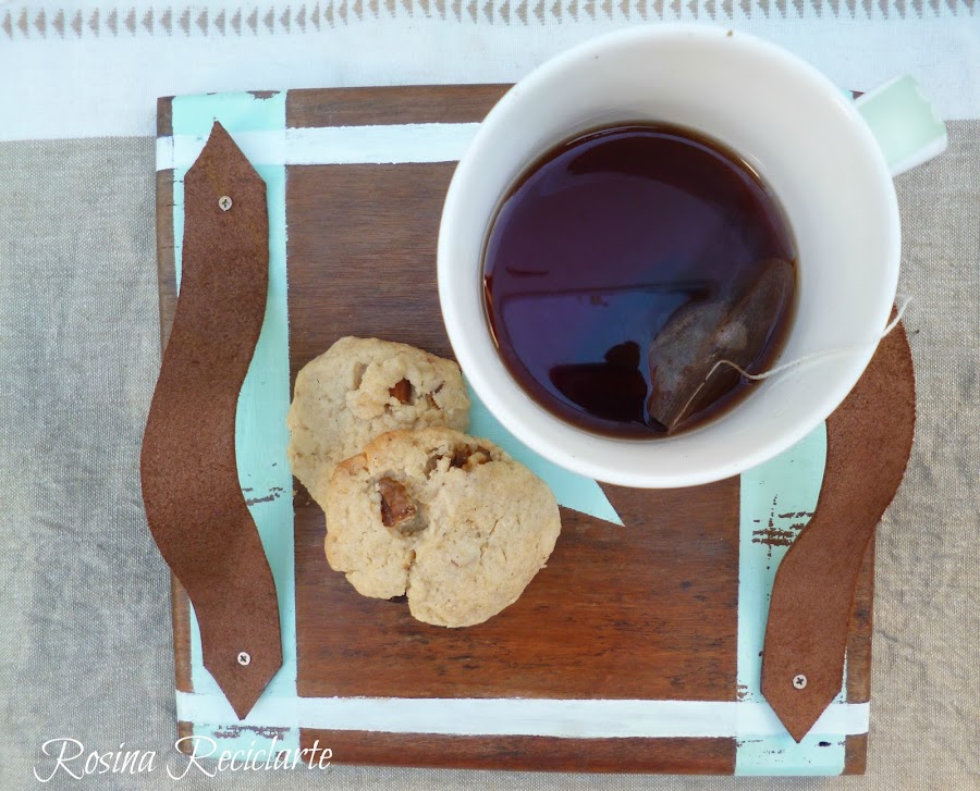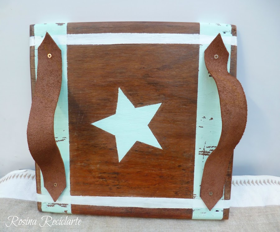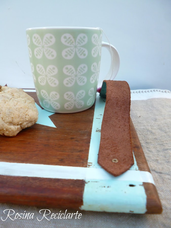 Ya tenía la peor parte hecha.Mientras enceré y fregué la madera decidí que sería una pequeña bandeja, de esas que por lo menos en mi casa son re útiles.