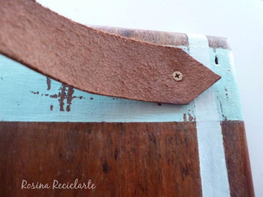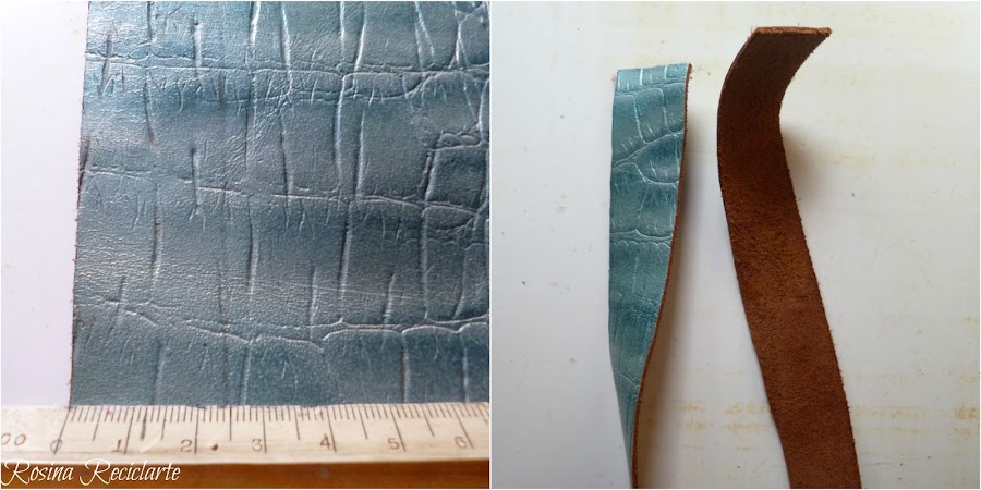 Pensé varias opciones para las asas y me decidí por este cuero topisimo celeste pero usado del revés.