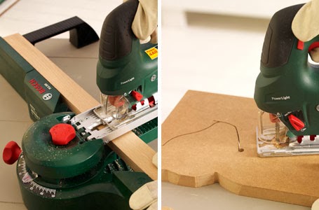 - Cortar la balda rectancular (también se puede hacer de otras formas,siempre dejando sítio recto para añadir los dos ositos) aparte a la que uniremos los ositos y lijar bordes.