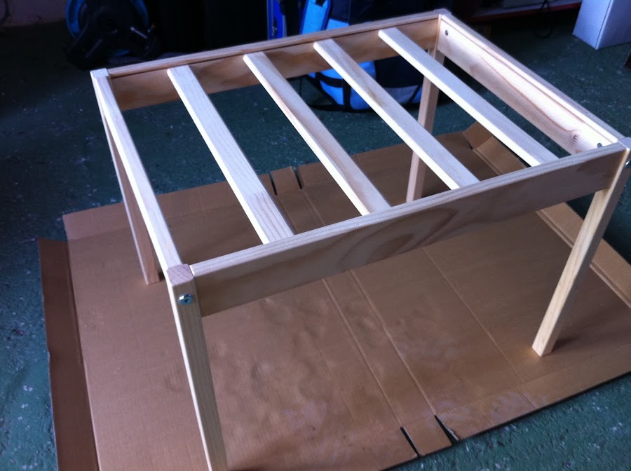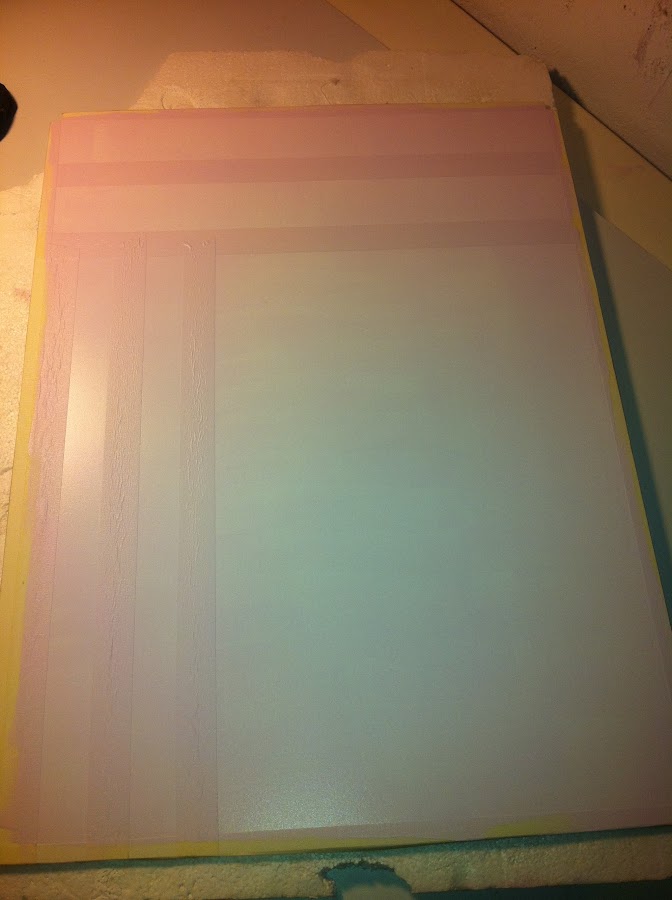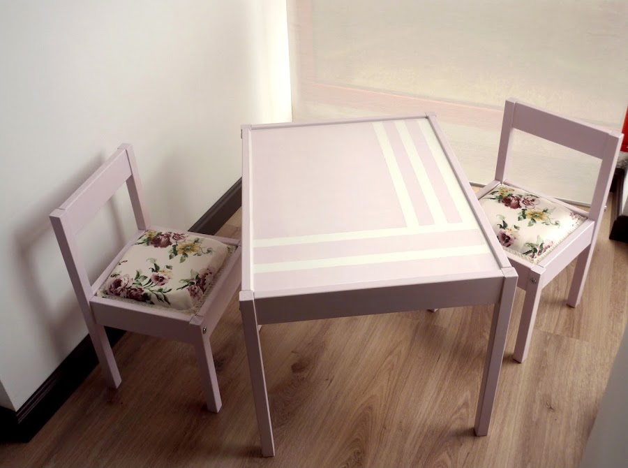 6º Con cinta de carrocero, tapamos el diseño que hemos hecho para la mesa y pintamos. Retiramos la cinta