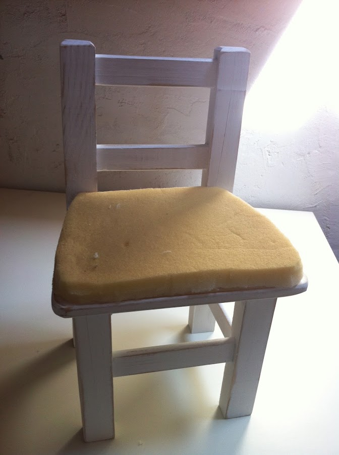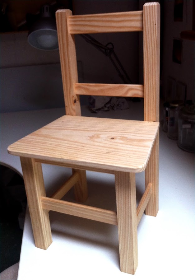 Lo primero fue adquirir una silla infantil de madera sin tratar (encontrar este mobiliario usado o de segunda mano, nos resulta casi imposible):