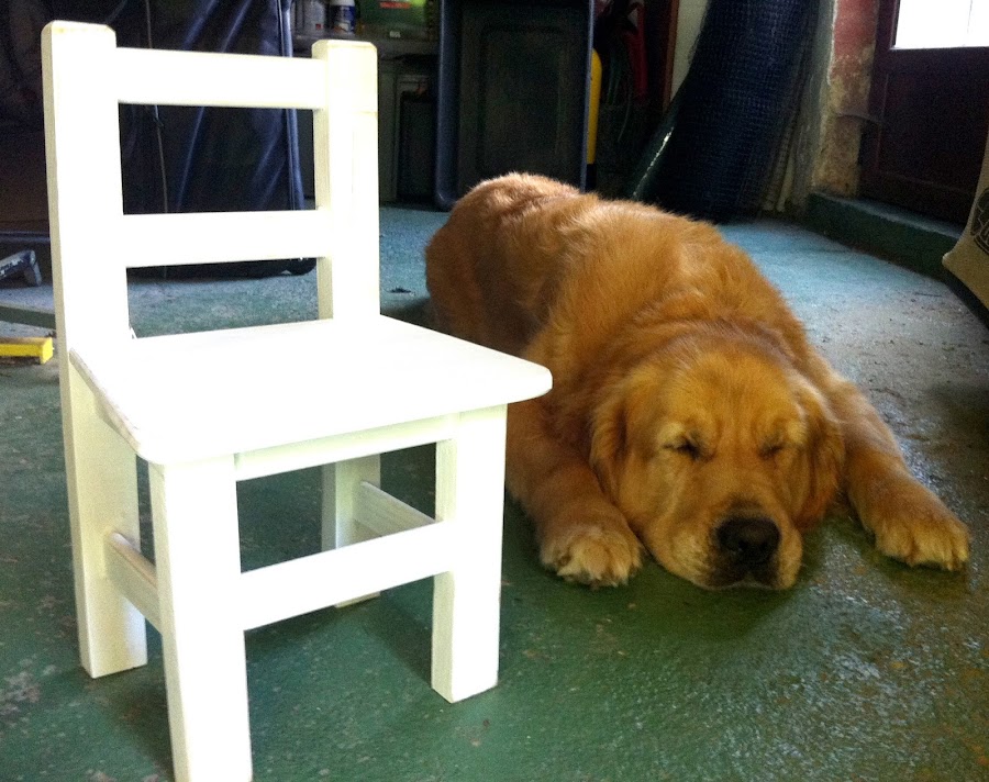 Pues decidimos hacer una mini silla vintage a juego, ya que puede tener su gracia que la silla del peque tenga el mismo aspecto que la de su mami o papi.