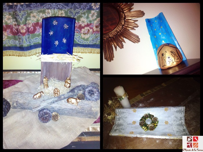 Que tal van las fiestas? nos queda poco para despedir este año y dar la entrada al nuevo, el que espero que venga cargado de éxitos, alegría y que los buenos propósitos y sueños se cumplan para todos. Y para seguir con el ambiente navideño os quiero enseñar algunos de mis rincones de casa, todos decorados tuneados y reciclados por mí, bueno de dos, una en la que vivo habitualmente y otra es la del pueblo.
