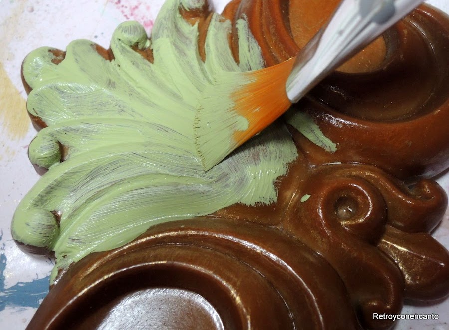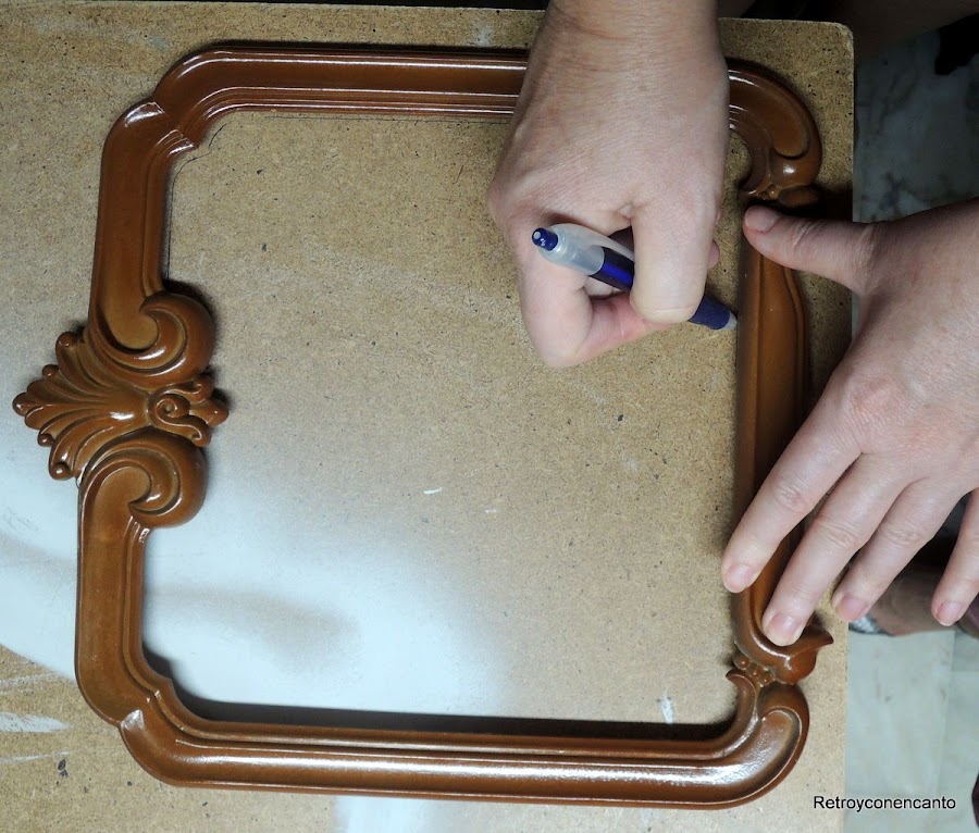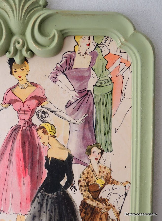 Color a la tiza a nuestra moldura en tono acorde con las láminas vintage y....