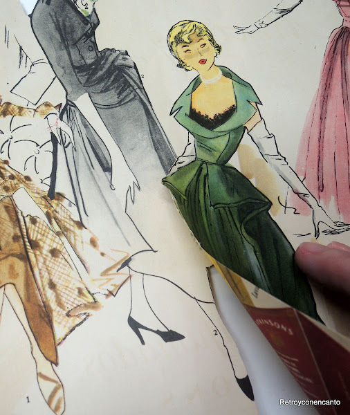 Tiramos de una de las revistas vintage que almacenamos en el taller, para recortar imágenes de moda y hacer nuestra propia composición.