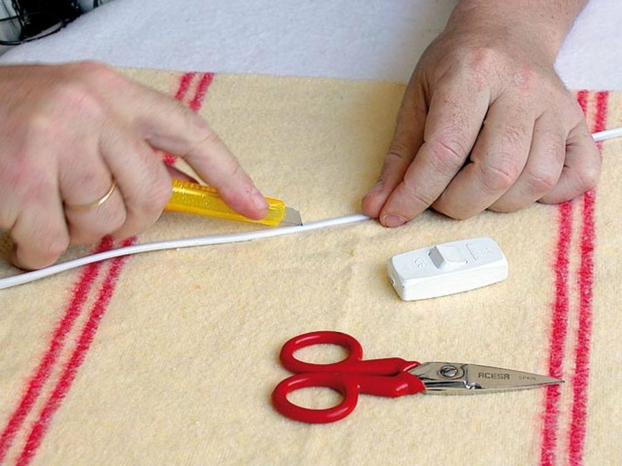 Hacemos una incisión con el cúter en el forro de plástico que protege los dos cables.